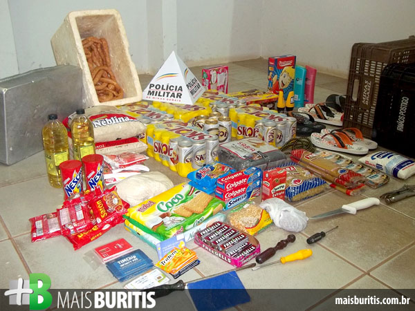 Os criminosos arrombaram a porta de vidro da mercearia Casa de Carne Buritis, levando R$ 400 em dinheiro, caixas de cerveja, alguns quilos de carne e pacotes de biscoito. Os outros alvos foram as lojas Carrossel e Fina Estampa.