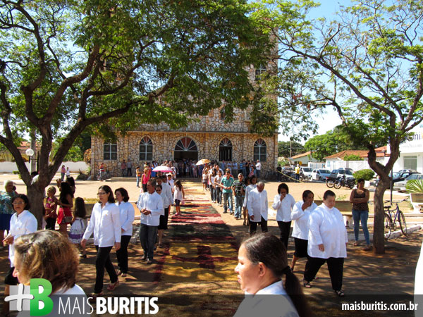 Em Buritis duas celebrações marcaram o dia de Corpus Christi. A primeira missa foi celebrada na igreja de Santa Luzia no bairro Taboquinha pelo padre Rafael e o diácono Ivo Betio. Na matriz do centro o celebrante foi o padre Régis, que falou da importância da eucaristia na vida do cristão em sua Homilia. Ao fim da missa sob um pálio dourado que era carregado pelos servos da eucaristia, o padre conduziu o ostensório durante a procissão de Corpus Christi.