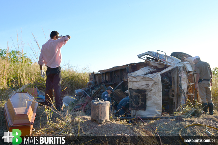 O caminhão é de uma empresa especializada em perfuração de poços artesianos, e vinha para Buritis pela MG-400 pra prestar serviço em uma fazenda. A Polícia Rodoviária Estadual acredita que o condutor perdeu o controle, não conseguiu fazer a curva e acabou tombando o veículo, que ficou bastante destruído.