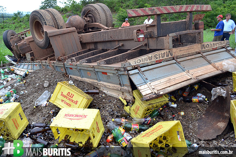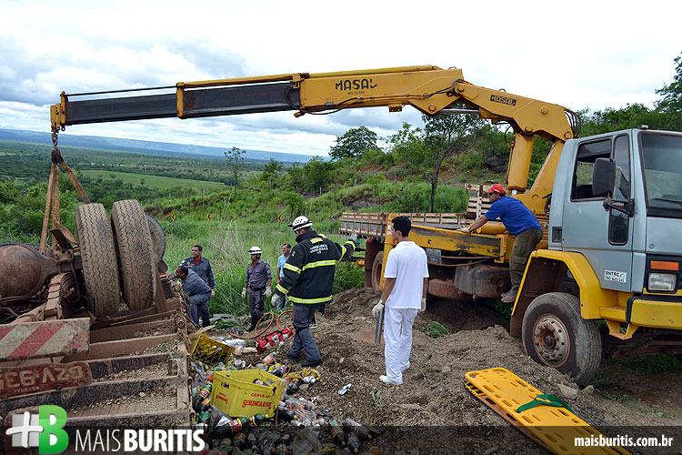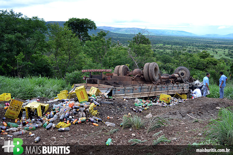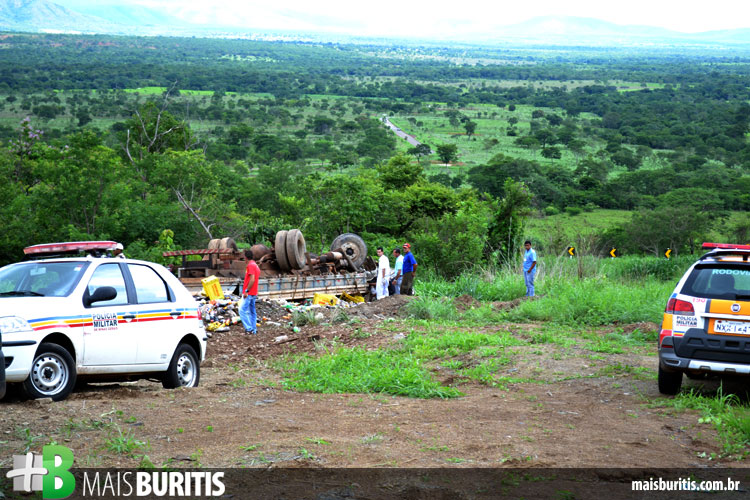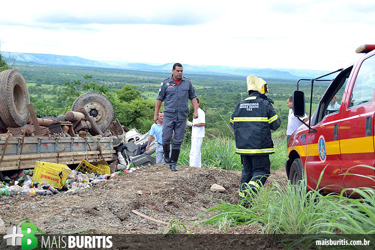 Um caminhão carregado de bebidas tombou na MG-400, no local conhecido como Serra da Morte, na manhã de terça-feira (17). O acidente aconteceu por volta das 9h50, quando os freios do veículo falharam durante a descida. O motorista e seu ajudante ficaram presos nas ferragens e tiveram ferimentos leves. O caminhão ficou completamente destruído e a carga se espalhou nas margens da rodovia.