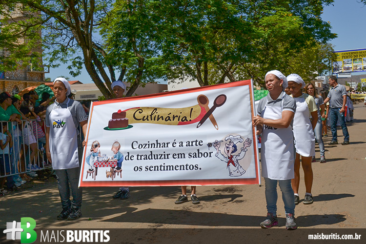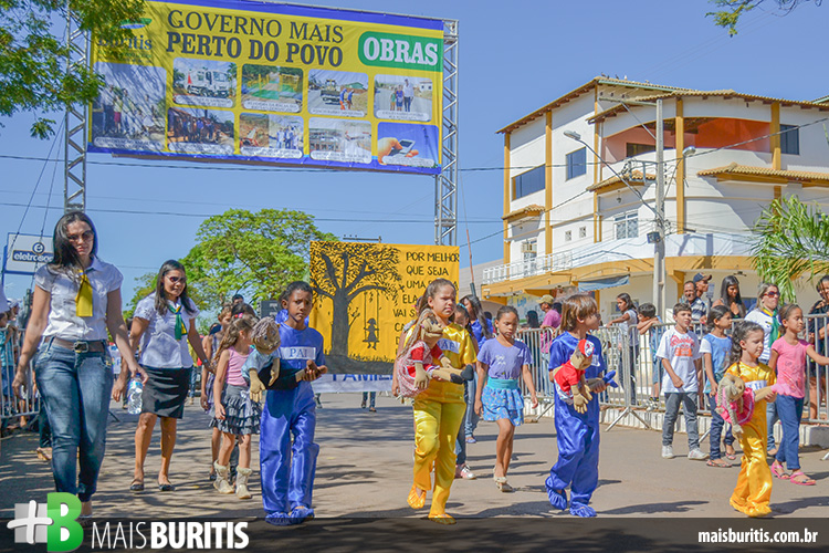 A Fanfarra Municipal abriu o desfile na manhã de sábado por volta de 09h00. Na sequência começaram os desfiles das escolas que trouxeram temas educativos e culturais, respeito ao meio ambiente, valores humanos, política, saúde entre outros. Cavaleiros e amazonas também desfilaram, mostrando que os primórdios da cultura buritisense permanecem presentes nas novas gerações.