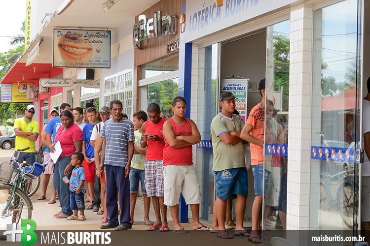 A fila foi grande na terça-feira (30) na única casa lotérica de Buritis por causa da Mega-Sena da Virada. As apostas podem ser feitas até as 13 horas de quarta-feira (31) e a estimativa é de que o prêmio alcance R$ 240 milhões. “Raramente jogo, nunca tenho sorte, mas dessa vez resolvi jogar e ver se a sorte está ao meu lado”, conta o eletricista Carlos Alberto Juarez, morador de Brasília-DF, de férias em Buritis e em pé há quase uma hora na fila para participar do sorteio.