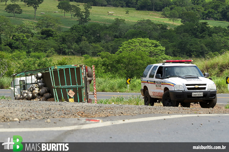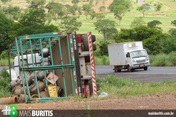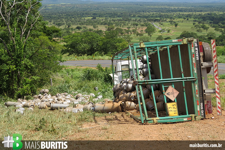 O veículo com placas JJQ-1996 saiu do SIA (Setor de Indústria e Abastecimento) em Brasília e transportava 420 botijões de gás que seriam comercializados em Buritis e Formoso.