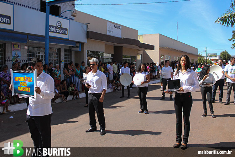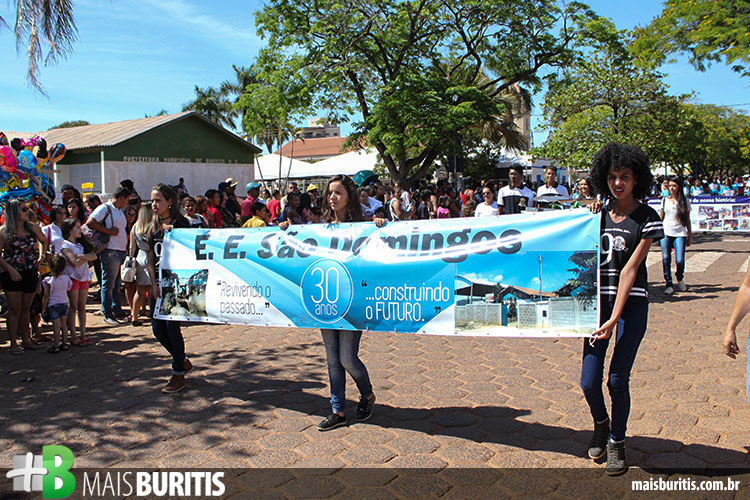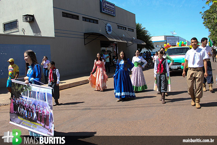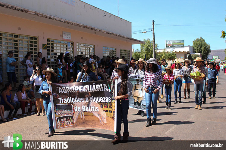 A Fanfarra Municipal abriu o desfile por volta de 9h. Na sequência começaram os desfiles que trouxeram temas educativos e culturais, como respeito ao meio ambiente, solidariedade e hábitos saudáveis. Cavaleiros e amazonas também desfilaram, mostrando que os primórdios da cultura buritisense permanecem presentes nas novas gerações.